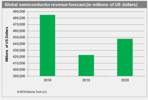 IHS Markit預(yù)計(jì),2020年全球半導(dǎo)體市場收入將出現(xiàn)反彈,從2019年的4228億美元增至4480億美元,增幅會達(dá)到5.9%。這可能會讓英特爾、三星、臺積電、高通、Broadcom等全球頂尖半導(dǎo)體公司松一口氣。